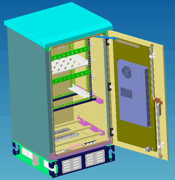 | 1 | Outdoor Telecom Cabinet | 1 | Set | (1) External Dimension H×W×D 1300×650×650mm ; (2) One compartment: the upper part is 19" rack, the lower part is one battery shelf. (3) With one front door, with three point lock for outdoor cabinet. (4) Material: galvanized steel; 1.5mm thick outer plate, 0.8mm thick inner plate; insulation: 20mm PEF. |